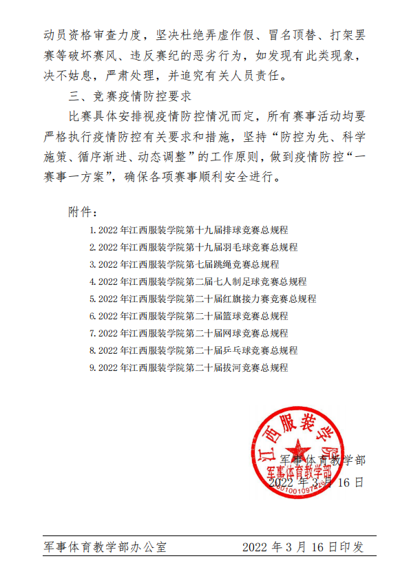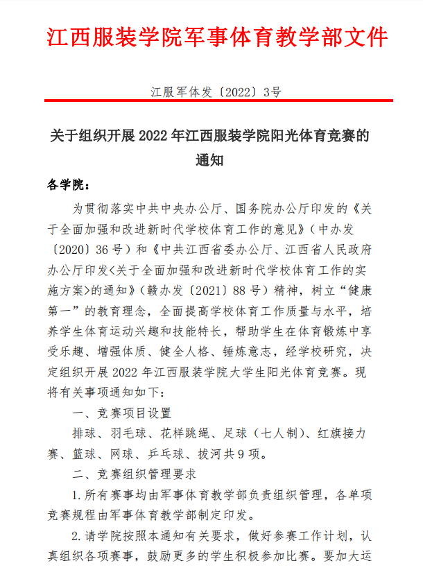 江服军体发[2022]3号-关于组织开展2022年yl23455永利集团阳光体育竞赛的通知