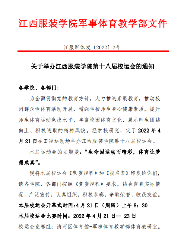 江服军体发[2022]2号-关于举办yl23455永利集团第十八届校运会的通知
