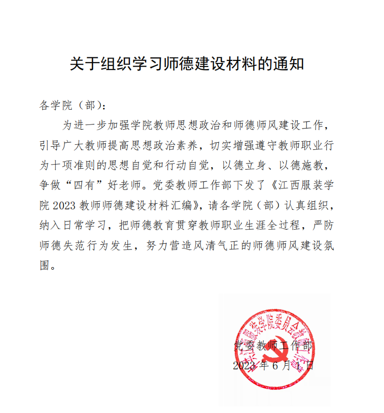 关于组织学习师德建设材料的通知