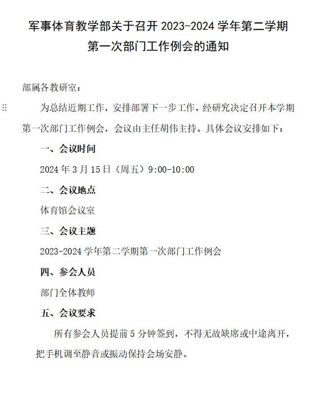 永利y23455关于召开2023-2024学年第二学期第一次部门工作例会的通知