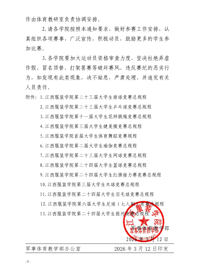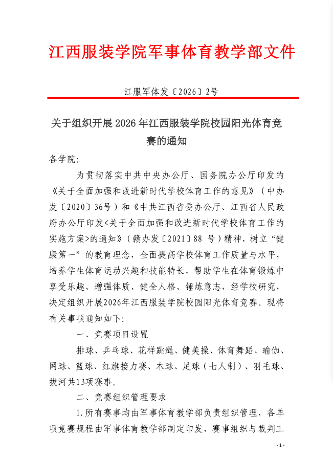 江服军体发〔2026〕2号-关于组织开展2026年yl23455永利集团校园阳光体育竞赛的通知