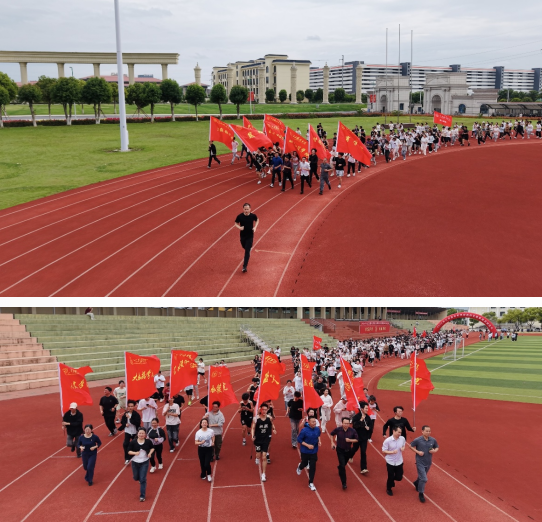 1200余名师生齐聚田径场起跑点,热身蓄力、意气风发,唐新强同各学院党委书记们带领学生一起活力开跑,奔跑中,各学院院旗和各体育运动训练队队旗迎风飘扬、猎猎作响,红色跑道上,蜿蜒的千人奔跑队伍成为一道靓丽的青春风景线,他们用汗水书写着担当,用脚步丈量着青春,用坚韧和热爱展现出江服师生奋勇争先、追求卓越的精气神。