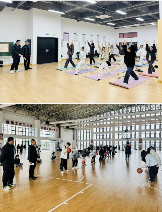 在检查过程中,他们走进瑜伽课堂进行随堂听课,学生们在曾令如教师的带领下,专注于每一次呼吸与动作的配合,在动静结合中感受身心的和谐统一。篮球馆内,哨声与球击声交织,教师陈文聪正组织学生进行基础运球与传切配合训练,学生们分组对抗,攻防转换间展现出良好的团队协作意识。在排球课堂上,教师周冬颖耐心指导学生练习垫球与发球技术,学生们两人一组,互相抛接,在一次次练习中打磨手感,培养默契。