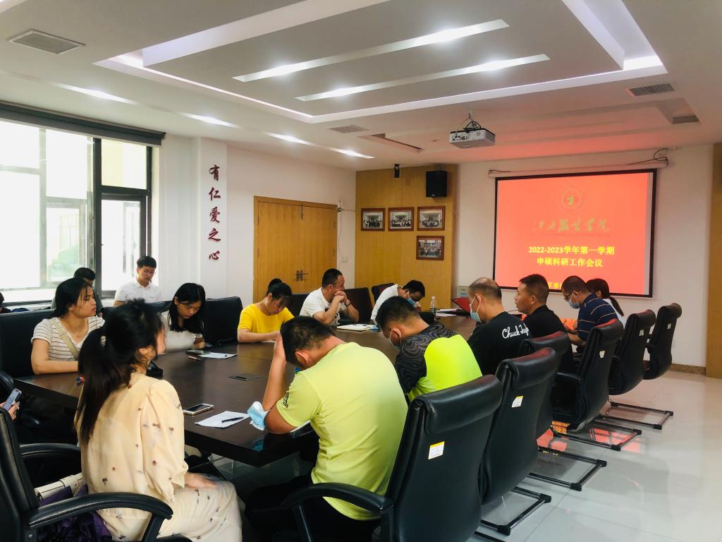 【军体部讯】为切实推进硕士学位授予单位立项建设工作,全面落实2022年部门既定科研目标任务,2022年9月30日上午,永利y23455在清源二楼会议室召开2022-2023学年第一学期申硕科研工作会议,部门全体教师参加会议。会议由永利y23455主任胡伟主持。